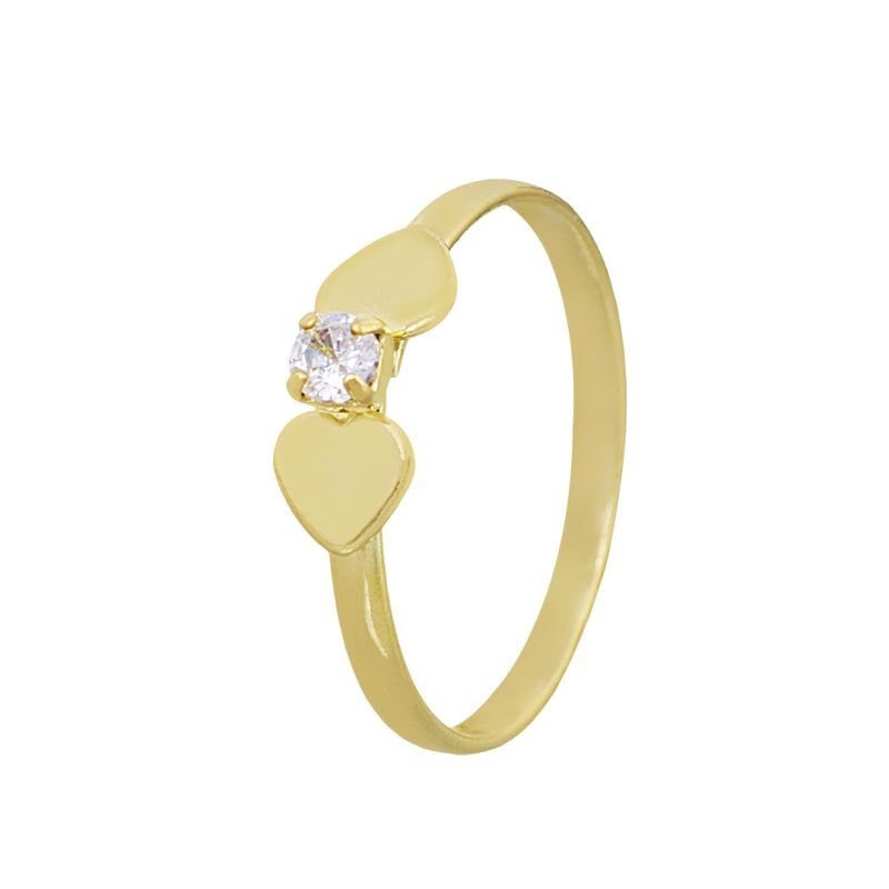 Anel com um ponto de luz CRISTAL e dois corações dourados lisos nas laterais. Modelinho delicado e querido pelas meninas de todas as idades. Semijoia banhada em ouro, antialérgicas e com 1 (UM) ano de garantia.
