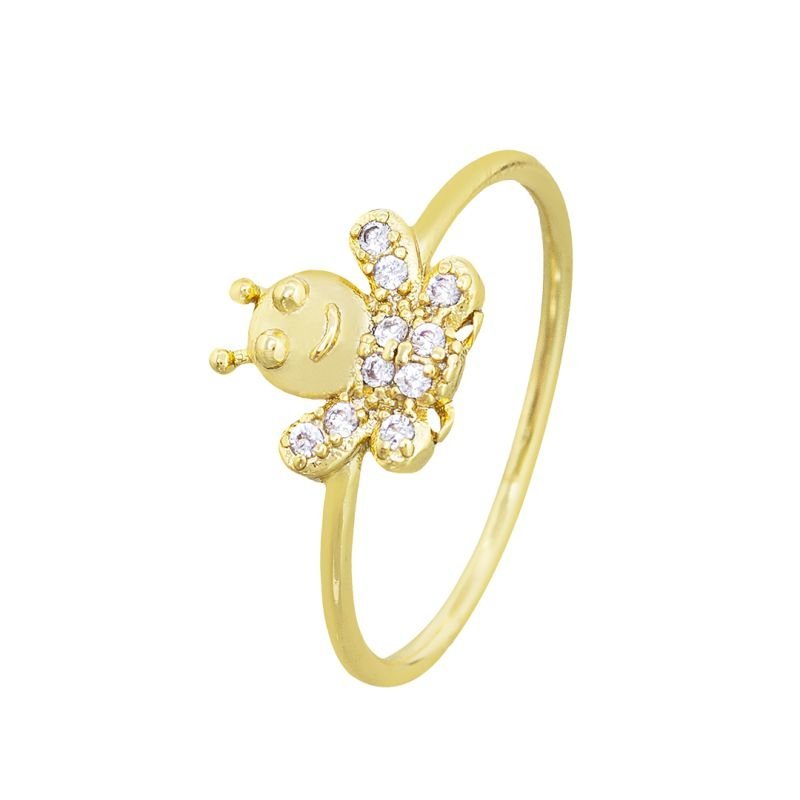 Este anel infantil de abelhinha cravejado com micro zircônias é uma escolha perfeita para presentear as crianças que sempre estão na moda. Com seu design lúdico e brilho encantador, o anel deixará as crianças ainda mais especiais e estilosas. Transmitindo alegria e personalidade, essa semijoia proporcionará um toque mágico a cada momento.