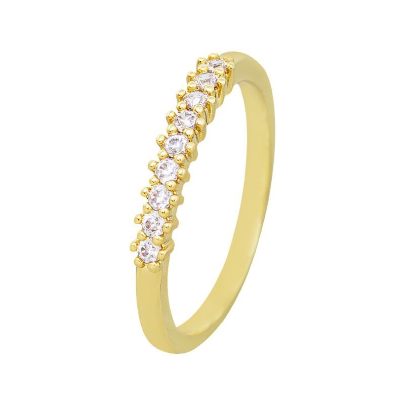 Este encantador anel infantil meia aliança com uma fileira de nove pedrinhas de micro zircônias, transforma-o em um presente perfeito para celebrar momentos mágicos da infância. As pedrinhas, cuidadosamente selecionadas e encaixadas, dispõem-se lado a lado com graça e simetria, expondo um brilho contínuo e uma elegância atemporal à sua semijoia.