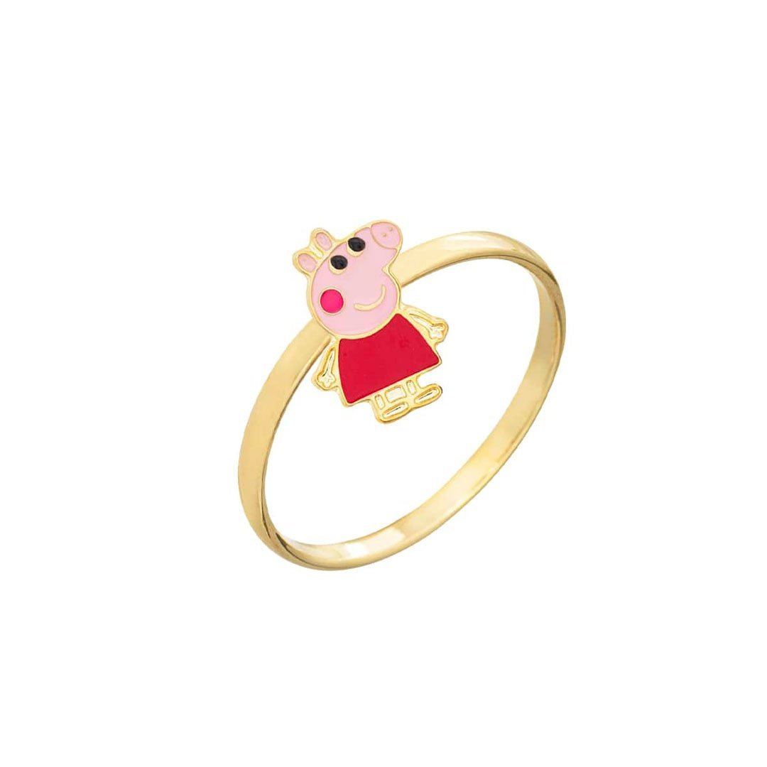Anel infantil inspiração Peppa Pig resinada em rosa claro e vermelho. seu formato é lúdico para dar mais sensação de realismo. Semijoia banhada á ouro 18k revestida com uma camada exclusiva de verniz antialérgico.