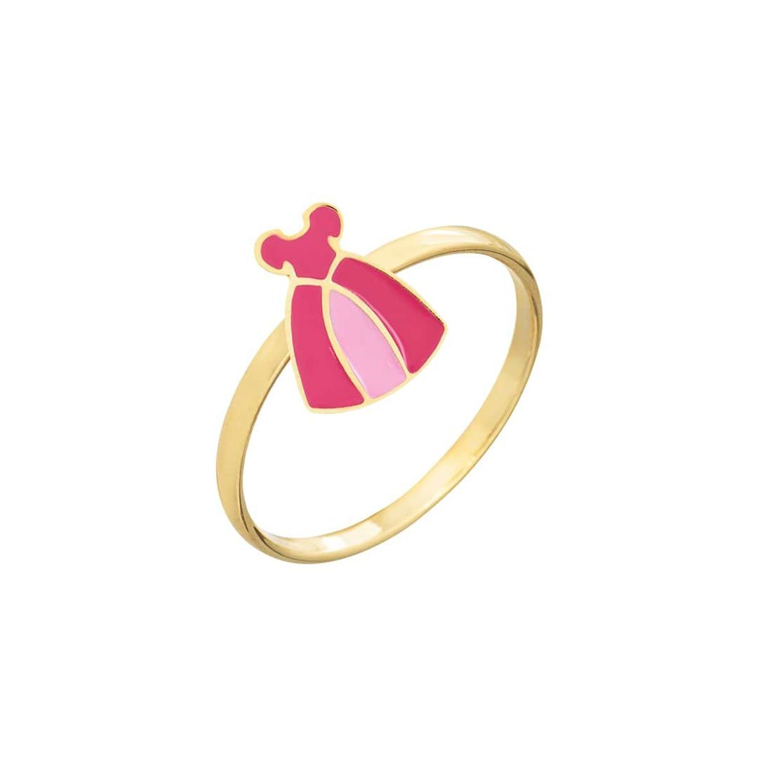 Anel infantil Vestido de Princesa resinado em rosa, perfeito para as meninas que gostam de se inspirar em princesas. Semijoia banhada á ouro 18k revestida com uma camada exclusiva de verniz antialérgico.
