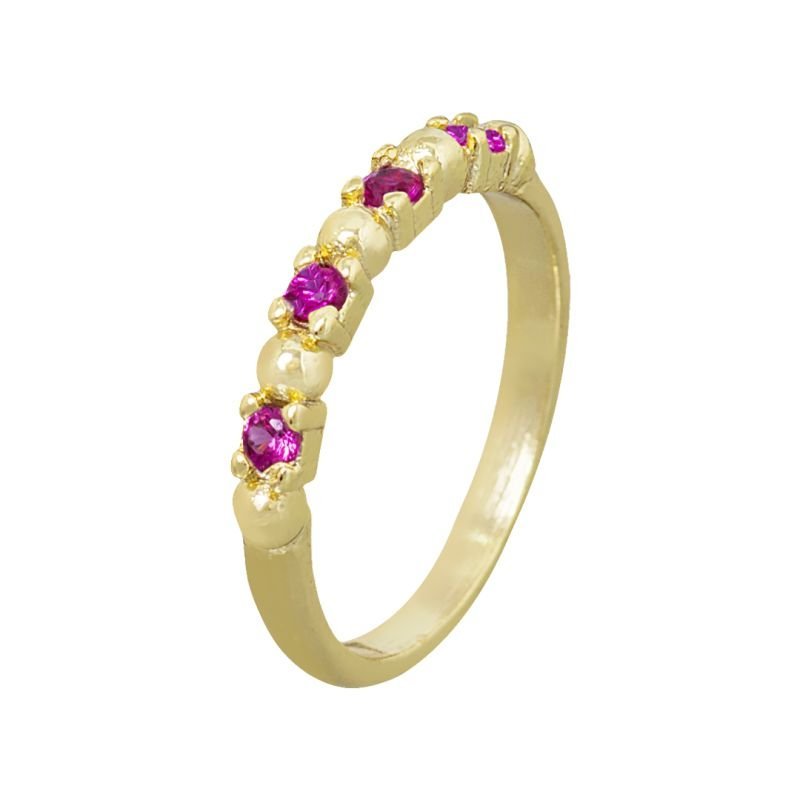 Anel com zirconias rosas intercaladas com delicadas bolinhas lisas.