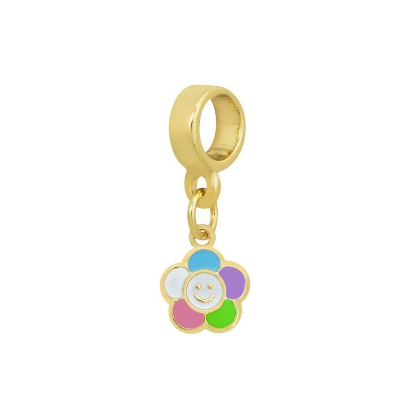 Berloque Infantil florzinha colorida resinada. Semijoia banhada á ouro 18k revestida com uma camada exclusiva de verniz antialérgico.