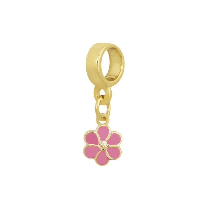 Berloque Infantil florzinha resinada na cor rosa. Semijoia banhada á ouro 18k revestida com uma camada exclusiva de verniz antialérgico.