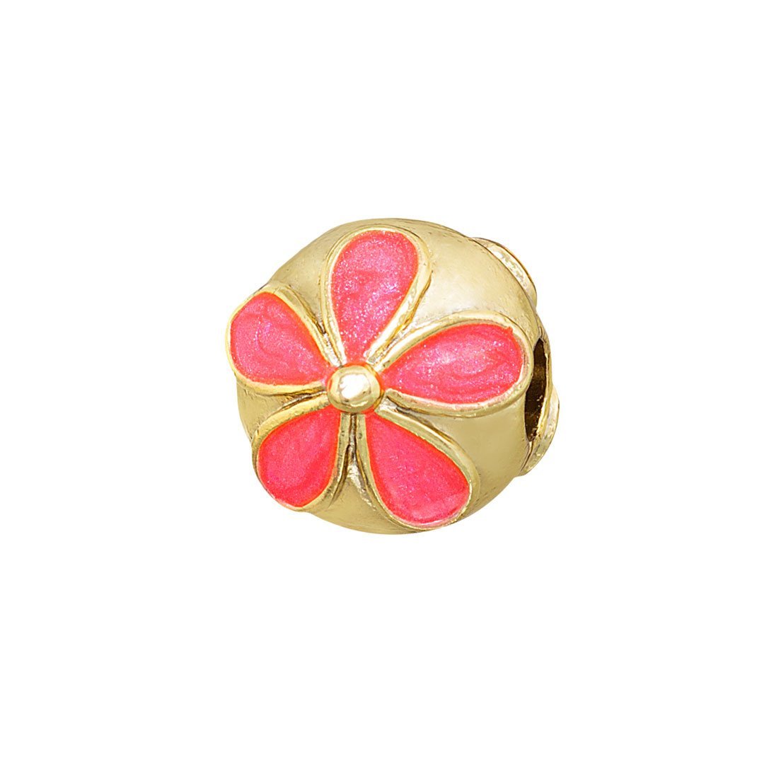 Trava com florzinha resinada para segurar os berloques da sua pulseira. Semijoia banhada á ouro 18k revestida com uma camada exclusiva de verniz antialérgico.