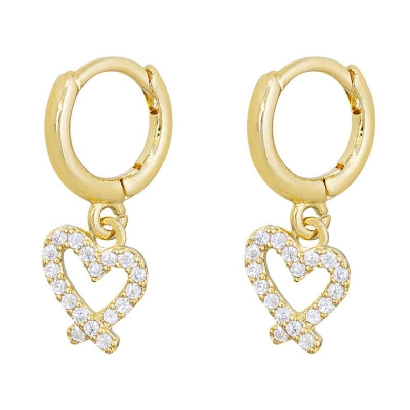 BRINCO BEBÊ ARGOLINHA CORAÇÃO CRAVEJADO EM ZIRCÔNIA BANHADO EM OURO