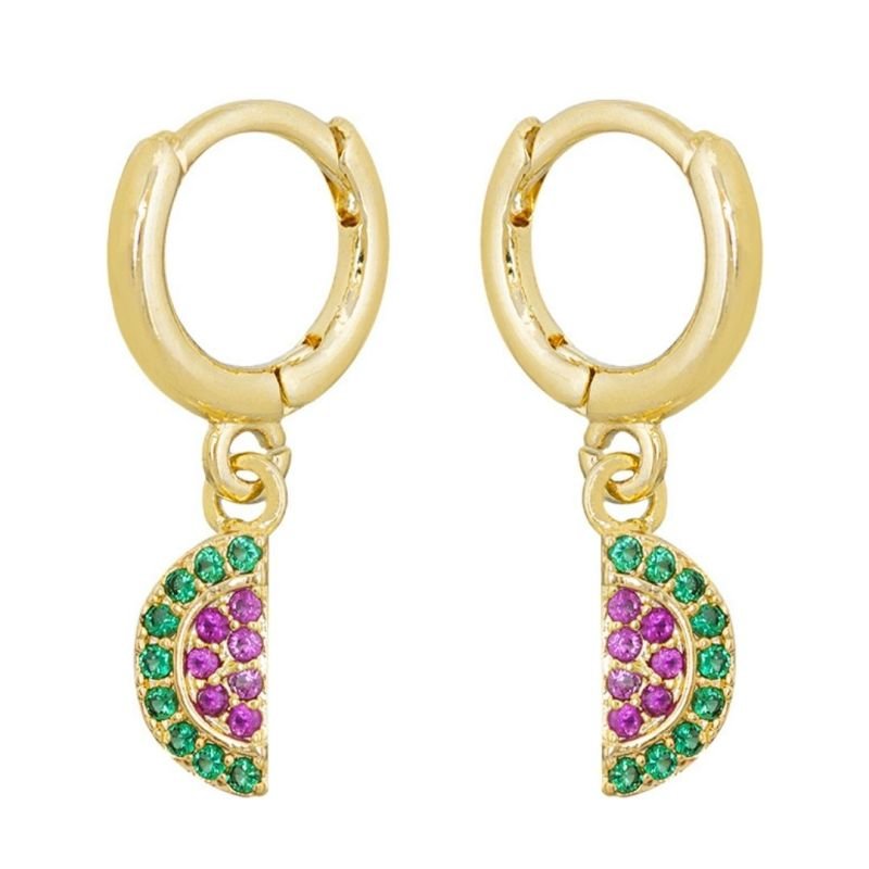 BRINCO BEBÊ ARGOLINHA MELANCIA CRAVEJADO EM ZIRCÔNIA BANHADO EM OURO