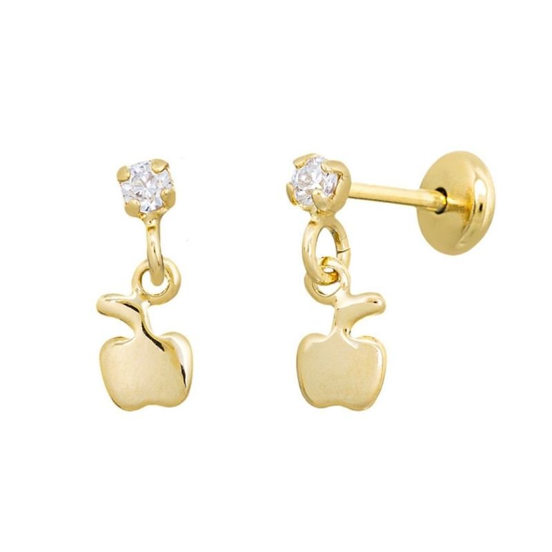 Destaque o charme e a fofura da sua pequena com o Brinco Bebê Base de Pedrinha com Maçãzinha Banhado em Ouro! ???? Inspirado pela delicadeza, esse acessório hipoalergênico traz uma pedrinha cravejada e uma maçãzinha lisa, símbolo de ternura e beleza.