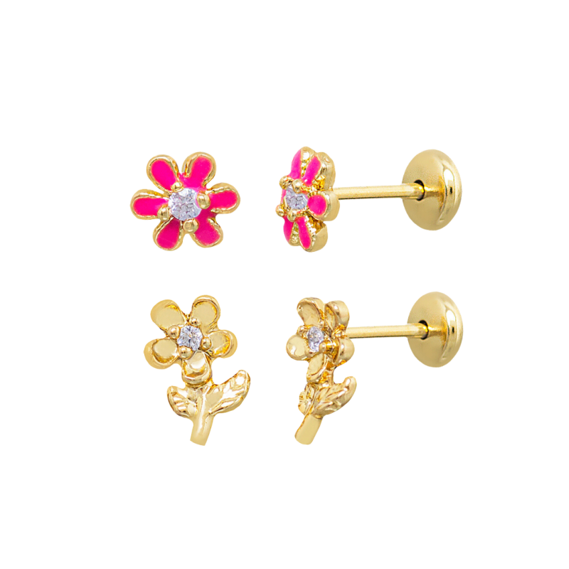 BRINCO DUPLINHA DE FLORES - BANHADO EM OURO