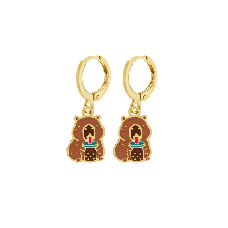 3. BRINCO INFANTIL ARGOLINHA CAPIVARA RESINADA BANHADO EM OURO