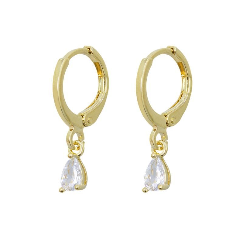 BRINCO INFANTIL ARGOLINHA PEDRINHA GOTA EM ZIRCONIA BANHADO A OURO