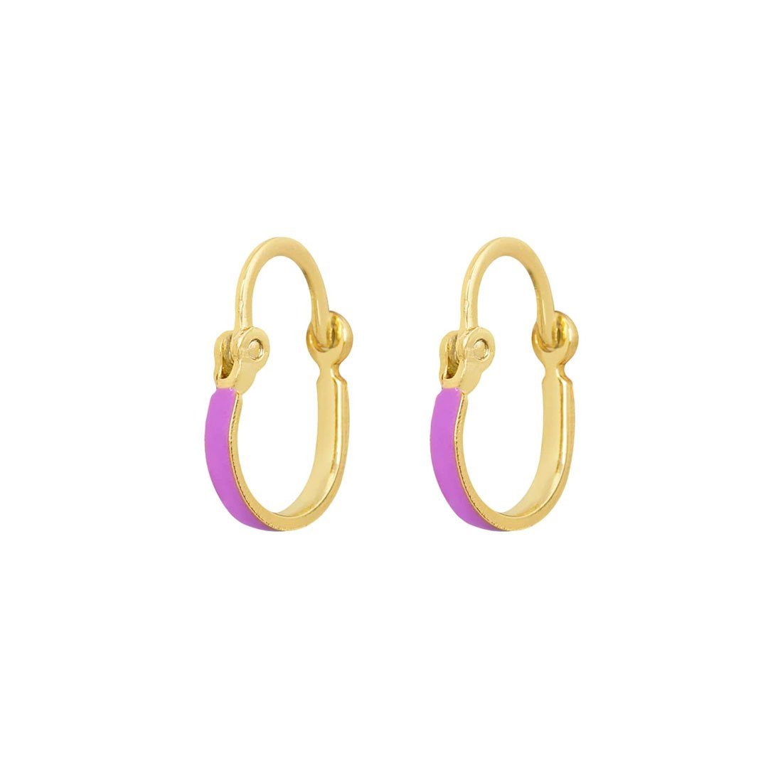 Brinco Infantil argolinha com resina colorida, podendo variar entre rosinha, roxo, verde agua e vermelho. Semijoia banhada á ouro 18k revestida com uma camada exclusiva de verniz antialérgico.