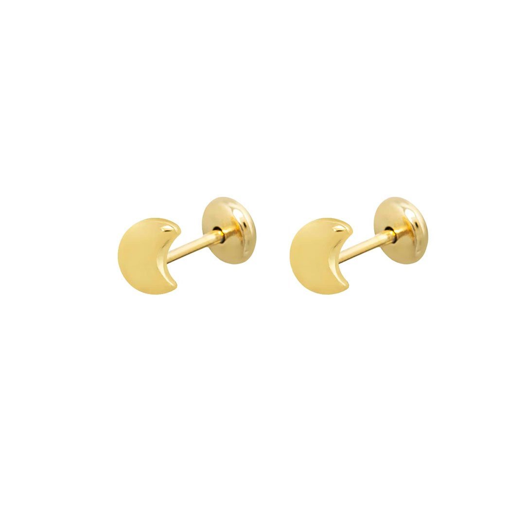 Brinco Infantil lua lisa. Semijoia banhada á ouro 18k revestida com uma camada exclusiva de verniz antialérgico.