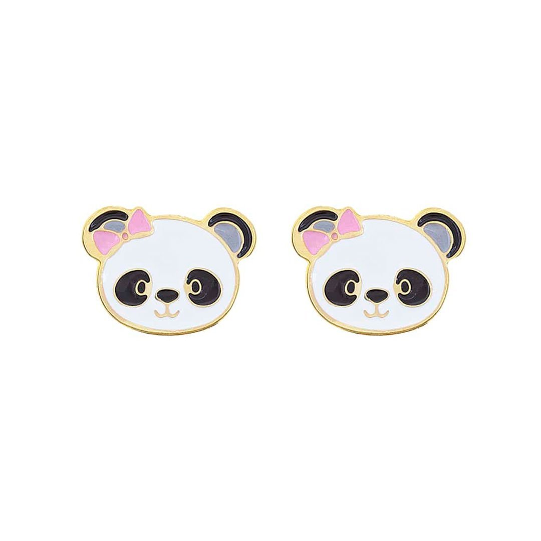 Brinco Infantil de Panda resinado em branco, preto e rosa. Semijoia banhada á ouro 18k revestida com uma camada exclusiva de verniz antialérgico.Para garantir mais segurança e conforto, todos os nossos brincos acompanham a tarraxa borboleta e a tarraxa baby.