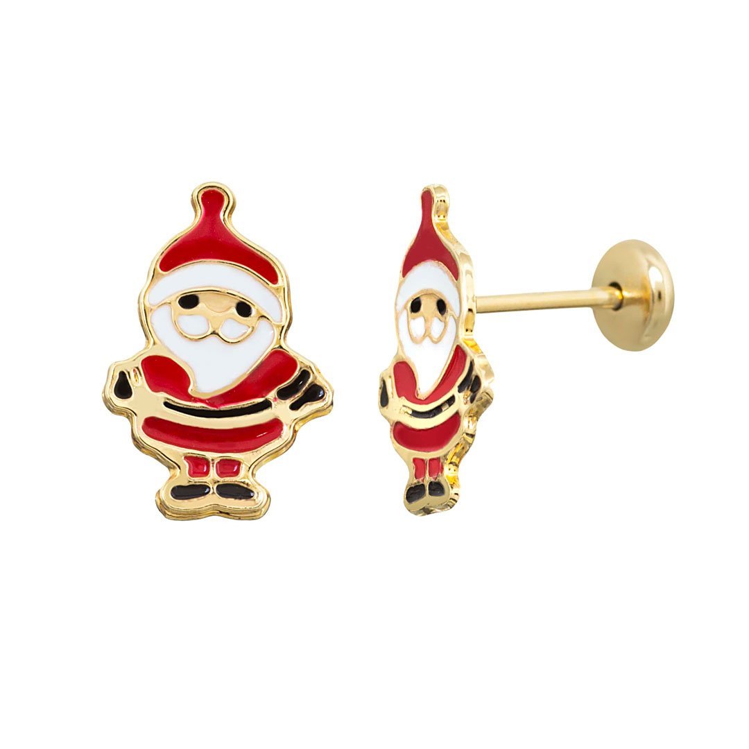 Brinco Infantil de Papai Noel resinado em branco e vermelho. Semijoia banhada á ouro 18k revestida com uma camada exclusiva de verniz antialérgico.