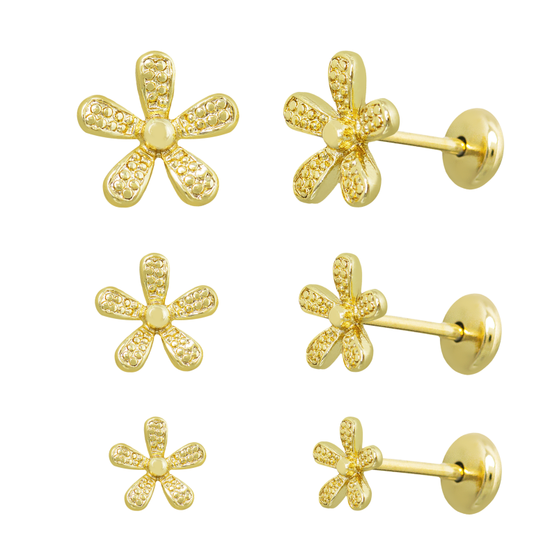 Brinco Infantil Trio Florezinhas, proporcione todo o cuidado e beleza que sua pequena merece. Este brinco, banhado em ouro, é delicado e antialérgico, garantindo conforto e elegância. Com tarraxa baby e tarraxa borboleta, oferece segurança no uso diário. Além disso, o produto possui um ano de garantia, proporcionando tranquilidade e confiança para você e sua filha. Adquira agora e dê à sua menina um toque de meiguice e delicadeza com este triozinho de flores.