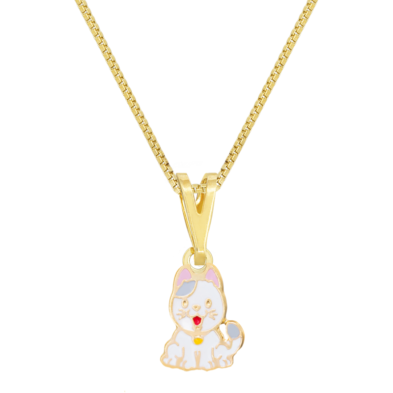 Colar Infantil Gatinho resinado, perfeito para homenagear o bichinho de estimação. Semijoia banhada á ouro 18k revestida com uma camada exclusiva de verniz antialérgico.