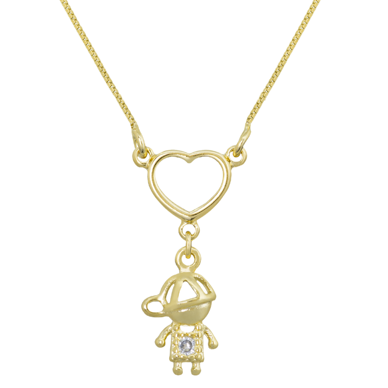 Transborde amor e elegância com o COLAR Coração e Menino Cravejado. Este design encantador da linha especial para o Dia das Mães combina sofisticação e sentimento, proporcionando às mamães uma maneira única de carregar o amor de seus filhos ao redor do coração. Com seu pingente em formato de coração vazado, cravejado com zircônias cristal em um detalhe delicado do menino, este colar é sinônimo de estilo, carinho e durabilidade. Semijoia antialérgica, banhado em ouro, com verniz para maior durabilidade. Corrente modelo Veneziana: leve, confortável e segura. Exclusivo design pensado para presentear ou revender em grande estilo. Garantia de um ano assegurando qualidade e confiabilidade. Surpreenda quem você ama com esta joia especial, perfeita para valorizar momentos inesquecíveis entre mãe e filho. Garanta já esse presente encantador e único!