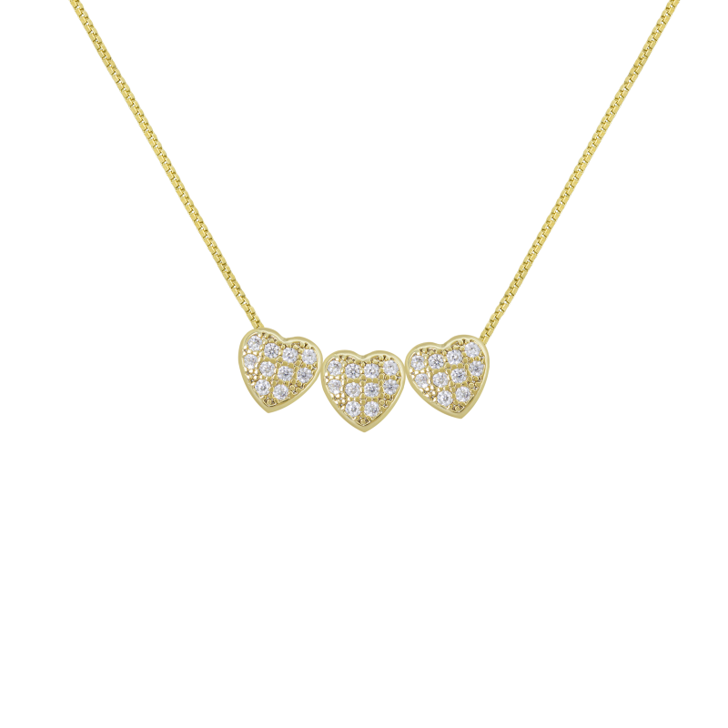 COLAR VENEZIANA COM 3 CORAÇÕES ENTREMEIOS CRAVEJADO BANHADO EM OURO