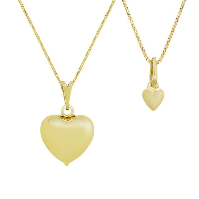 Encante-se com o conjunto de colares coração liso, banhado em ouro, perfeito para mamães e filhinhas expressarem seu amor e estilo com elegância. Feito com material antialérgico e garantia de um ano, proporciona segurança e conforto. Com detalhes delicados, este conjunto único transmite beleza, charme e amor em uma única peça. Aproveite a oportunidade de exibir sua conexão materna de forma sofisticada. Escolha já o seu!