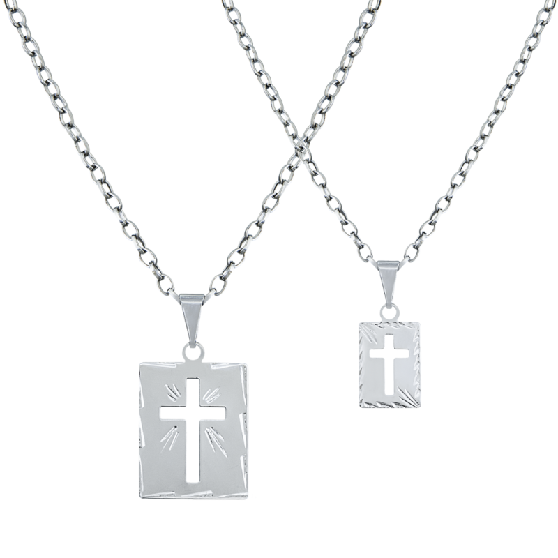 Com o Conjunto de Correntes Pai e Filho Plaquinha Cruz em Aço Inox, você terá a garantia de um ano para esse símbolo especial de amor e fé. Feito em aço inox, as correntes representam a ligação única entre pai e filho. A plaquinha com cruz vasada central traz elegância e significado ao conjunto, perfeito para quem busca estilo e conexão familiar. Ideal para revenda, esse crucifixo é a escolha ideal para expressar o vínculo único entre pais e filhos. Adquira já e fortaleça os laços com quem você ama!