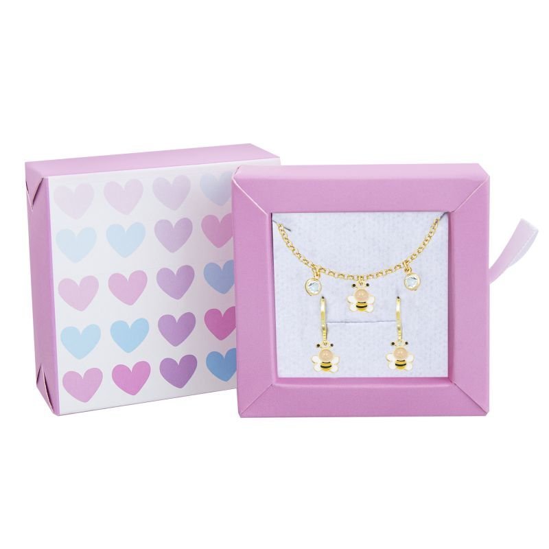 Conjunto abelhinha resinado nas cores amarelo, preto e bege. Extremamente meigo e lúdico, ideal para as meninas delicadas que gostam de inovar no look. Formado por duas semijoias: brinco argola e uma linda pulseira com pedrinhas na cor cristal. Além disso, as peças são banhadas em ouro 18k, antialérgicas e vêm com um ano de garantia. Cada conjunto acompanha uma embalagem especial, delicadamente decorada com corações em tons suaves de rosa, lilás e azul. Um kit encantador, pensado para ser a escolha perfeita na hora de presentear com carinho e amor. Garanta o seu e transforme o dia delas em um momento mágico e inesquecível. Uma embalagem repleta de encanto para tornar cada presente ainda mais especial!