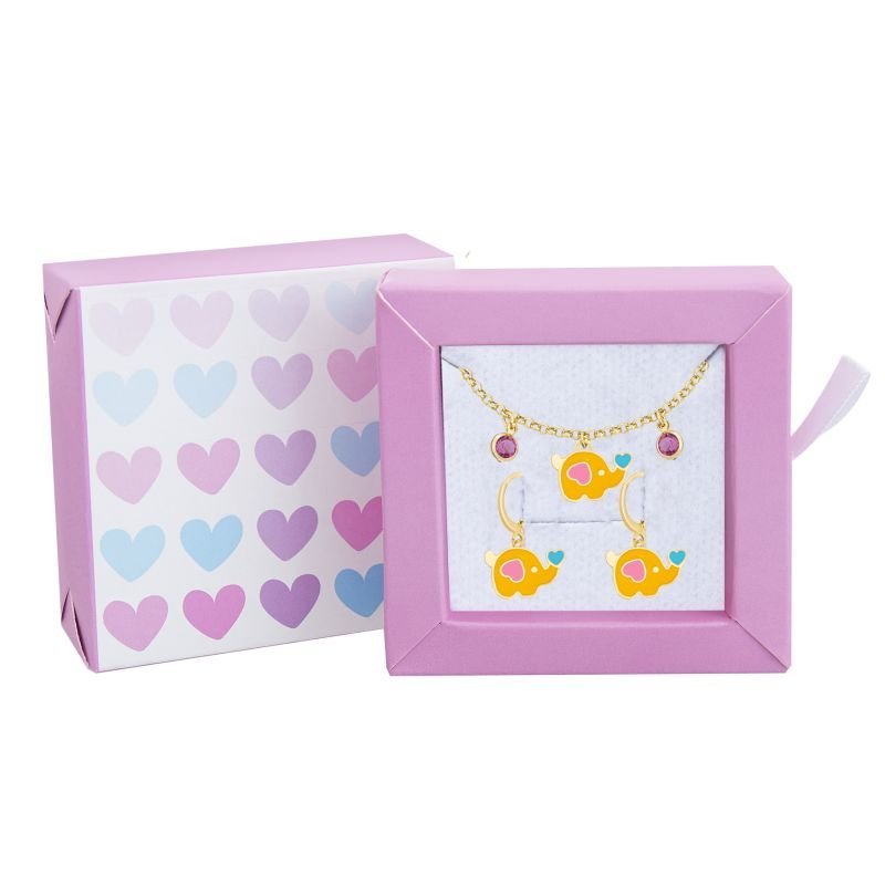 Conjuntinho elefantinho resinado nas cores amarelo, azul e rosinha. Extremamente delicado para as meninas que amam animais. Formado por duas semijoias: brinco argola e uma linda pulseirinha com pedrinhas. Esse kit acompanha uma caixinha de presente com corações desenhados nas cores rosa, lilás e azul. Essa embalagem é estilo gavetinha com puxador de fita de cetim, modelo ideal para presentear. Dentro acompanha uma almofadinha branca.