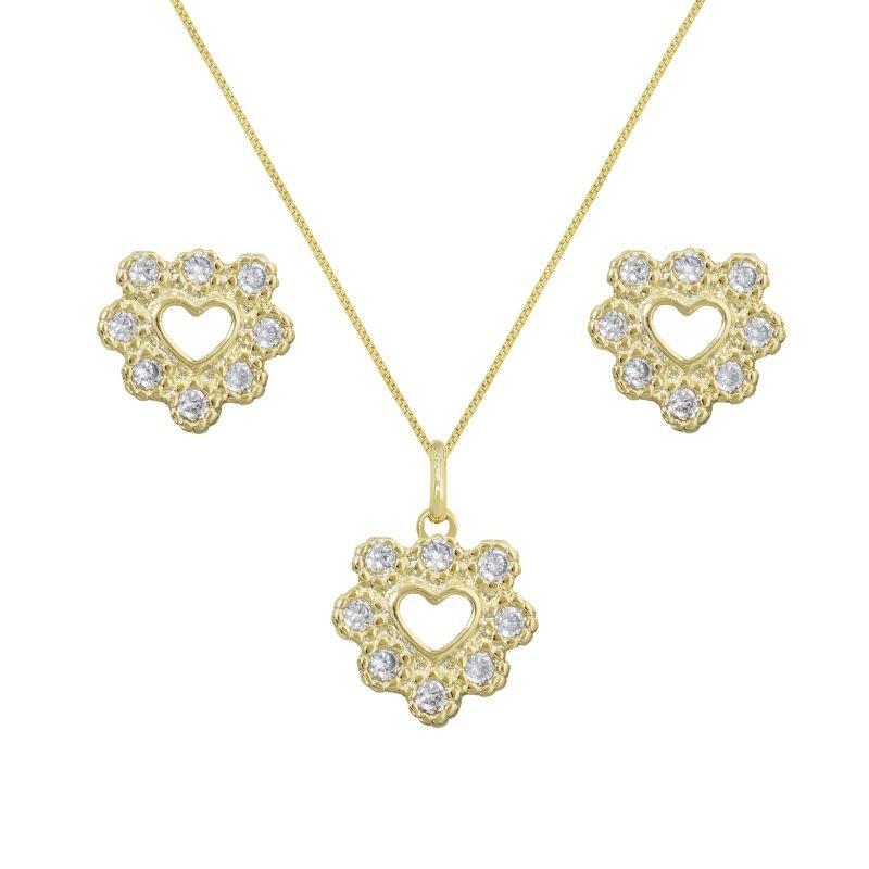 Encante-se com o Conjunto Infantil Brinco e Colar Coração Cravejado, uma semijoia feita especialmente para preencher os dias das pequenas com brilho e estilo! Cada peça deste conjunto é banhada a ouro e adornada com zircônias cristal, garantindo um toque de elegância que combina com todas as ocasiões. Além da beleza deslumbrante, este conjunto foi pensado com total segurança e conforto. O brinco possui tarraxa baby e tarraxa borboleta, oferecendo tranquilidade aos pais. É uma semijoia hipoalergênica e conta com uma camada de verniz para aumentar sua durabilidade, proporcionando qualidade confiável com 1 ano de garantia. Presenteie com charme ou revenda com exclusividade! Ideal para quem valoriza estilo e carinho em cada detalhe. Conheça a elegância infantil que combina sofisticação e cuidado!