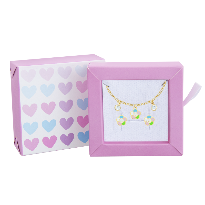 Este Conjunto Infantil Brinco e Pulseira Flor Feliz Banhado em Ouro é a escolha perfeita para meninas felizes e cheias de estilo! As peças são banhadas em ouro, antialérgicas e garantem durabilidade com um ano de garantia. A flor feliz resinada colorida traz alegria ao visual, enquanto a pulseira com pedrinha cristal em zircônia e pingente encantador completam o conjunto. Além disso, o kit vem em uma caixinha de presente especial, estilo gavetinha com detalhes delicados de corações desenhados. Surpreenda alguém especial com este conjunto encantador da Jukkê!