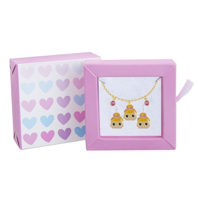 Conjuntinho inspirado na Lol SIS resinado em bege, rosa e amarelo. Modelinho super especial para as meninas que gostam de desenhos animados, formado por duas semijoias: brinco fixo e uma linda pulseirinha com pedrinhas. Esse kit acompanha uma caixinha de presente com corações desenhados nas cores rosa, lilás e azul. Essa embalagem é estilo gavetinha com puxador de fita de cetim, modelo ideal para presentear. Dentro acompanha uma almofadinha branca.