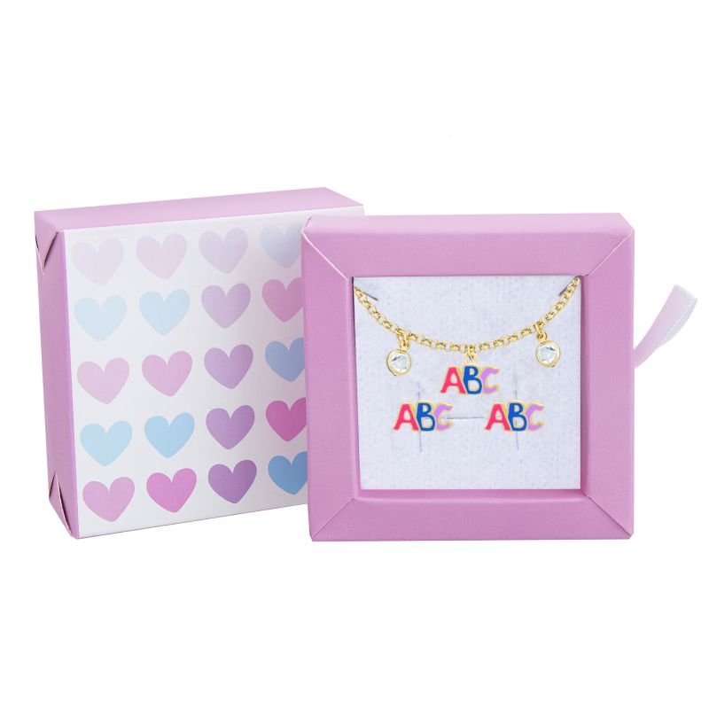 Surpreenda sua pequena estudiosa com o encantador Conjunto Infantil Brinco Fixo e Pulseira ABC Banhado em Ouro!