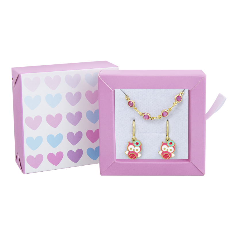 Este conjunto infantil de coruja com pulseira de pedrinhas rosas banhadas a ouro foi desenvolvido para criançaspensando na vaidade e no estilo das pequenas fashionistas, esse conjunto é perfeito para complementar diversos looks com charme e elegância. Os brincos de coruja são de argolinha, resistentes e hipoalergênicos, garantindo conforto e segurança para as orelhinhas sensíveis das crianças. O banho em ouro proporciona um brilho especial, conferindo um toque delicado e sofisticado na peça. A pulseira, com suas delicadas pedrinhas banhadas a ouro, adiciona um toque de brilho e glamour ao conjunto. A pulseira com pedras se adapta perfeitamente ao pulso das crianças, garantindo conforto durante todo o dia. Para tornar o presente ainda mais especial, o conjuntinho é acompanhado por uma encantadora caixinha de presente com corações, garantindo que presente seja especial.