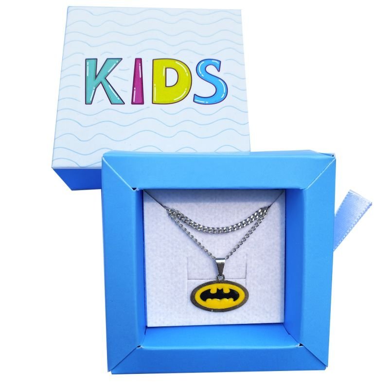 Apresentamos o Conjunto Infantil Menino Corrente e Pulseira em Aço Inox, uma peça única e exclusiva para os meninos que amam super-heróis. Com pingente resinado, essa semijoia antialérgica é perfeita para presentear e revender. Garantia de um ano, exclusividade e qualidade em aço inox.