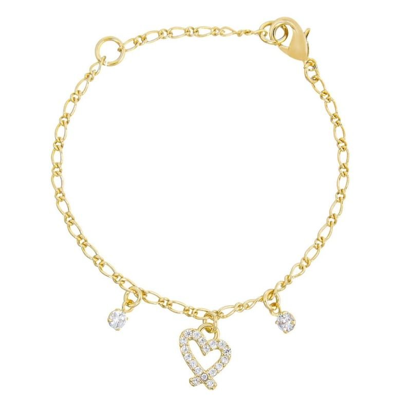 Encante-se com a delicadeza da Pulseira Bebê Coração Cravejado Banhado em Ouro! A escolha perfeita para transformar cada momento em puro brilho e ternura. Este acessório foi feito pensando no conforto e na segurança das pequenas, sendo uma semijoia hipoalergênica, com um ano de garantia e camada de verniz para maior durabilidade. O coração cravejado em micro zircônia cristal, acompanhado de duas delicadas pedrinhas, eleva o design sofisticado que é um encanto para completar o visual das meninas. O extensor garante o ajuste perfeito no pulso do bebê, proporcionando além de beleza, praticidade e versatilidade.