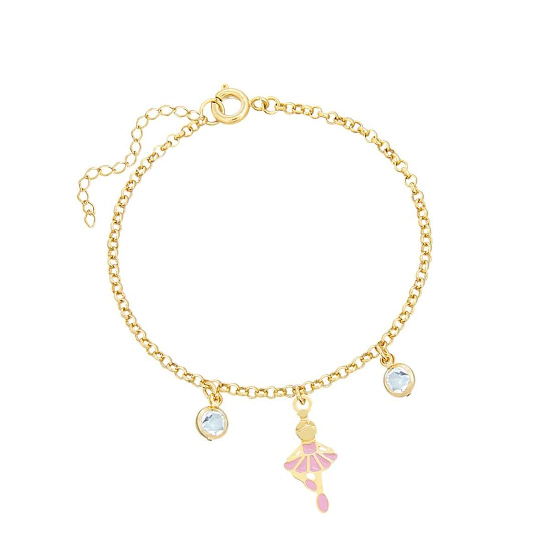 PULSEIRA INFANTIL BAILARINA RESINADA COM PEDRAS BANHADO A OURO