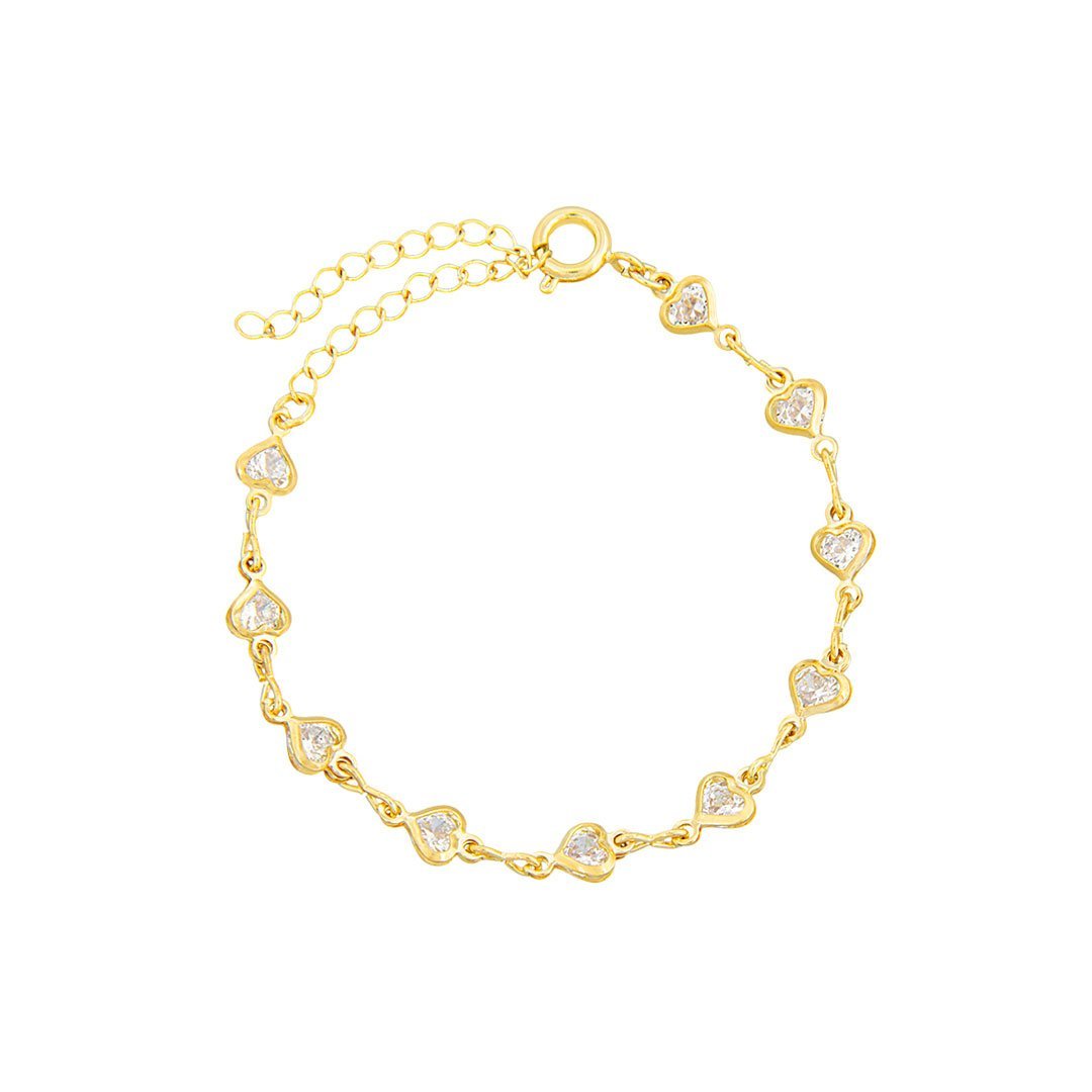 Pulseira infantil Corações com pedras, bem delicada. Semijoia banhada á ouro 18k revestida com uma camada exclusiva de verniz antialérgico.